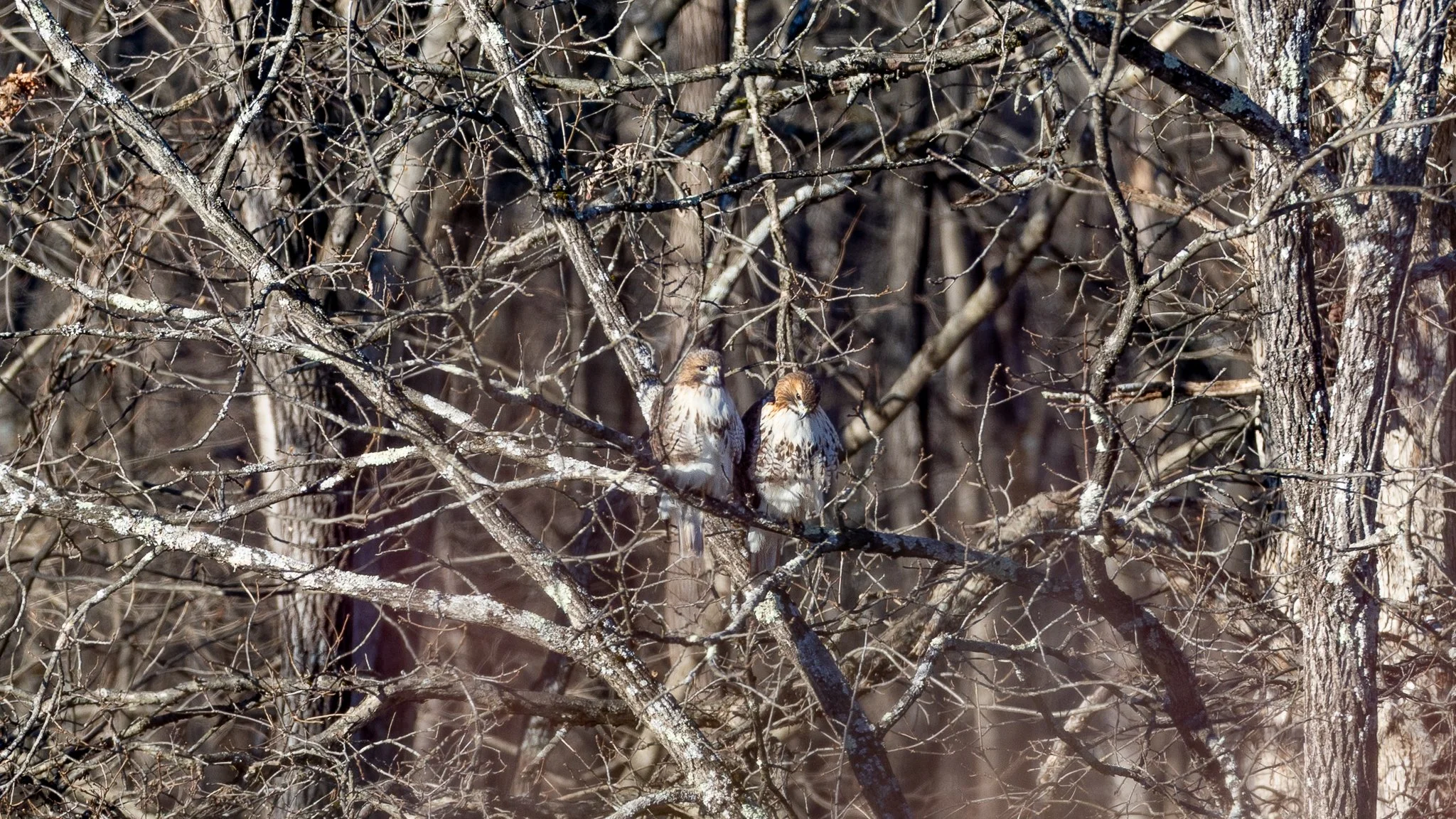 I steadily extended my monopod, set my camera up for the current lighting, and placed the cold camera body in my ice hands. In once calm, slow, and sweeping motion, I aligned my lens with the birds. A couple of fluffed up, cuddling redtail hawks. My heart swelled with gratitude. What a treat after a morning of no luck at all. Even though there wasn’t a composition, I clicked away. In this moment, I couldn't help but think of their relationship. Where they mates? Siblings? Was I witnessing a couple getting ready for breakfast together? Or were they just trying to stay warm? Either way, sitting as they were was a choice.